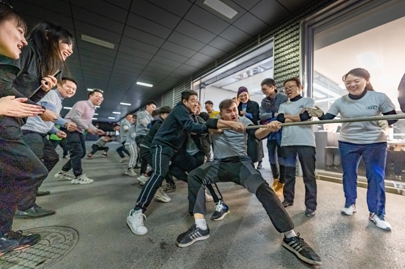 11月26日是比賽日的最后一天,比賽項(xiàng)目是廣播體操和拔河。廣播體操項(xiàng)目共12支參賽隊(duì)120人同時(shí)進(jìn)行比賽,整個(gè)二手車(chē)展廳都是我們的運(yùn)動(dòng)健兒。通過(guò)賽前的精心準(zhǔn)備,隊(duì)員們伴隨著節(jié)拍,從伸展運(yùn)動(dòng)到整理運(yùn)動(dòng),舉手投足、彎腰轉(zhuǎn)身、跳躍整齊、眼神自信、完美詮釋了廣播體操的精氣神,贏得了在場(chǎng)領(lǐng)導(dǎo)及所有同事的陣陣掌聲。最后的比賽當(dāng)然是超熱血的拔河比賽,每位隊(duì)員都表現(xiàn)出了頑強(qiáng)的意志和拼搏精神。在啦啦隊(duì)的吶喊助威下,隊(duì)員們都鼓足了勁,漲紅了臉,抓緊繩子,全力以赴,努力爭(zhēng)奪。加油聲、嘆息聲、歡呼聲,此起彼伏,將比賽的氣氛拉到了最高潮。