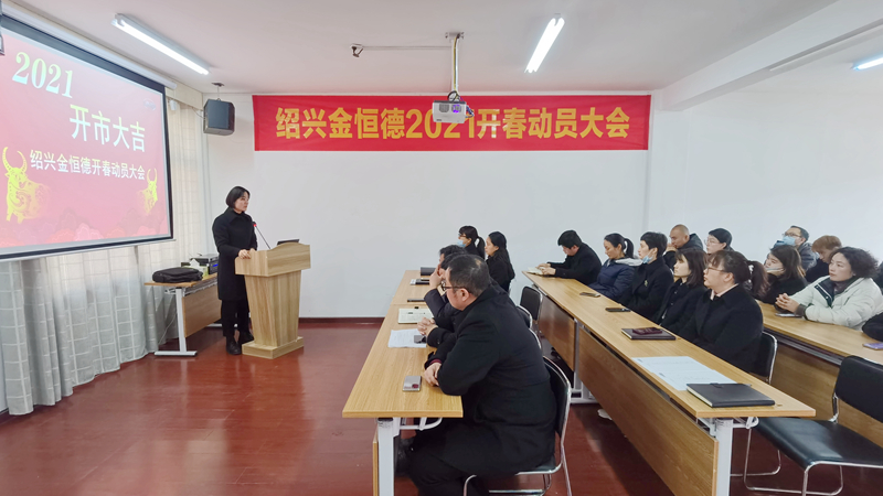 為統一員工的思想,共謀良策大計,布好局,鋪好路,打好2021年第一仗,中午,紹興金恒德全體員工在三樓會議室召開了新春動員大會。