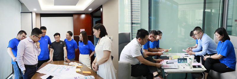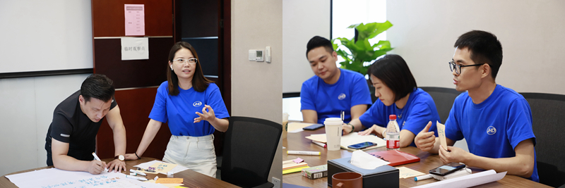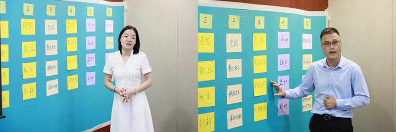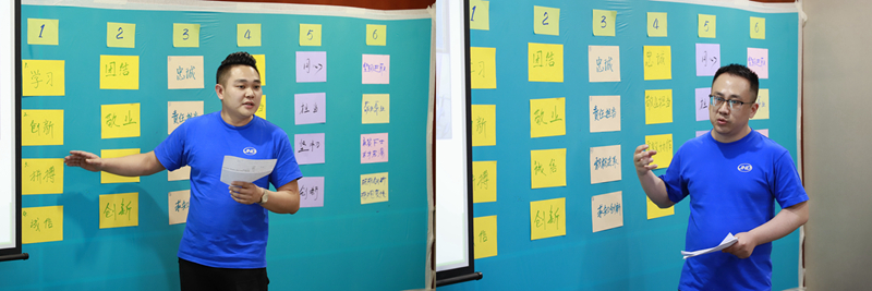 隨后,每組分別領取一個品質關鍵詞,從金恒德使命和愿景出發,為品質豐富內涵,提煉出該品質的核心原則。