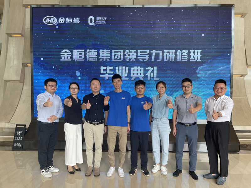 2021年8月20日,金恒德集團領導力研修班——“恒星班”畢業典禮正式舉行,本次活動以線下、線上兩種方式在杭州、成都同步開展。集團董事長周金法、集團高管、各公司負責人、量子教育創始人葉祺仁、量子教育新商學副院長茹潔穎以及眾位學員出席典禮,集團副總裁楊樹丹主持。
