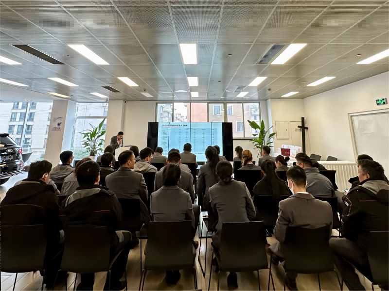 1月29日下午,東陽德奧在二手車展廳召開2023年度總結暨表彰大會,主管級以上人員參加了此次會議,會議由總經理助理杜俏俏主持。